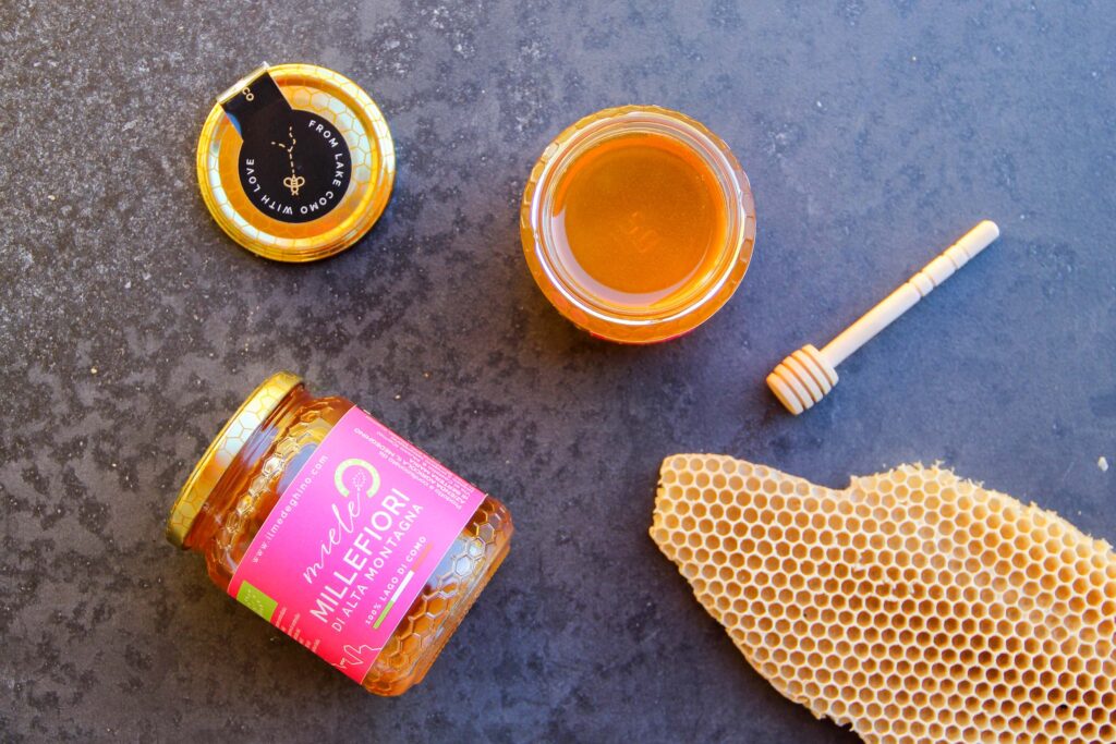 Our Bio Honey is made from pollen and nectar taken fro m pristine flowers grown on the mountains of North Lake Como.