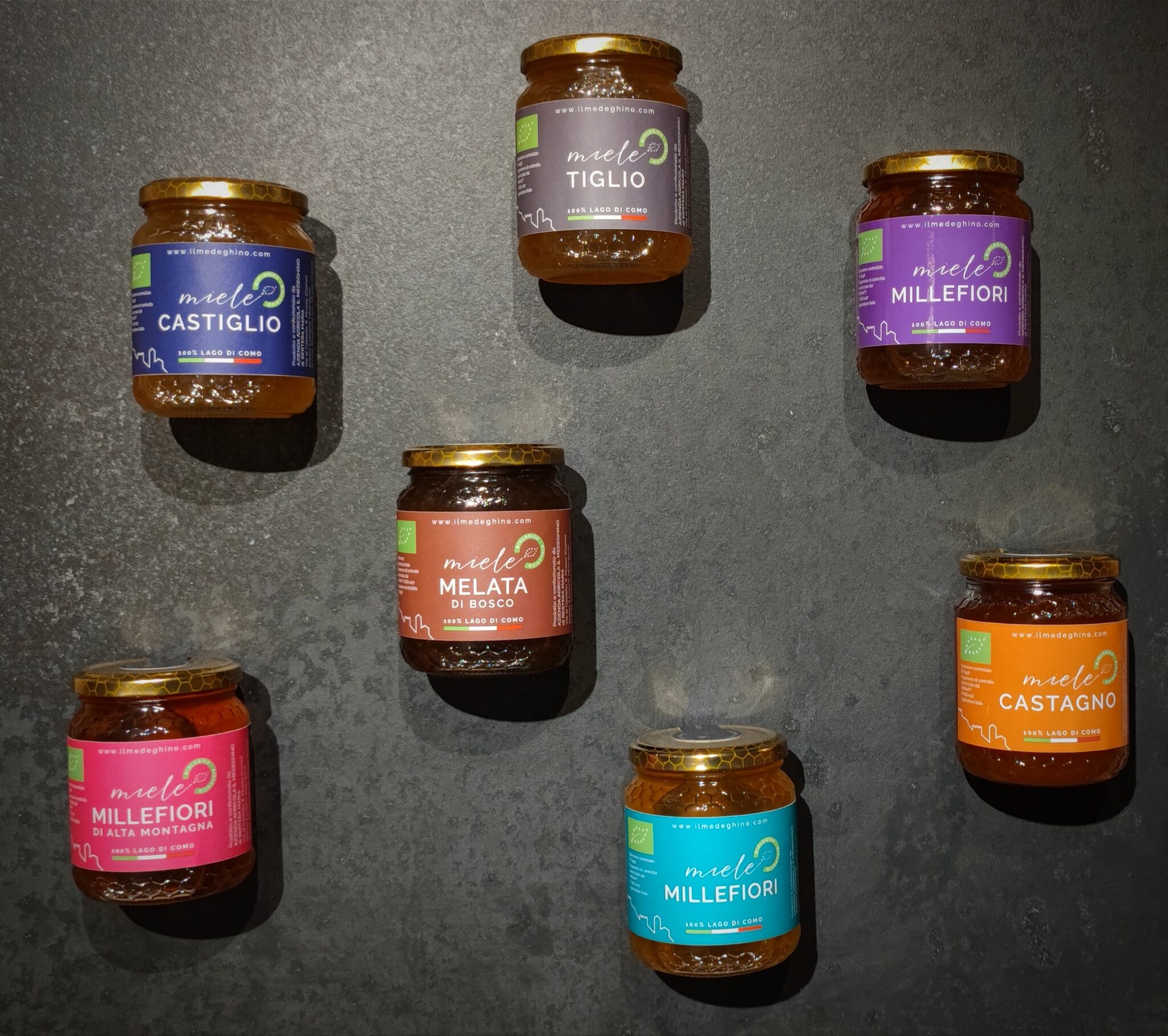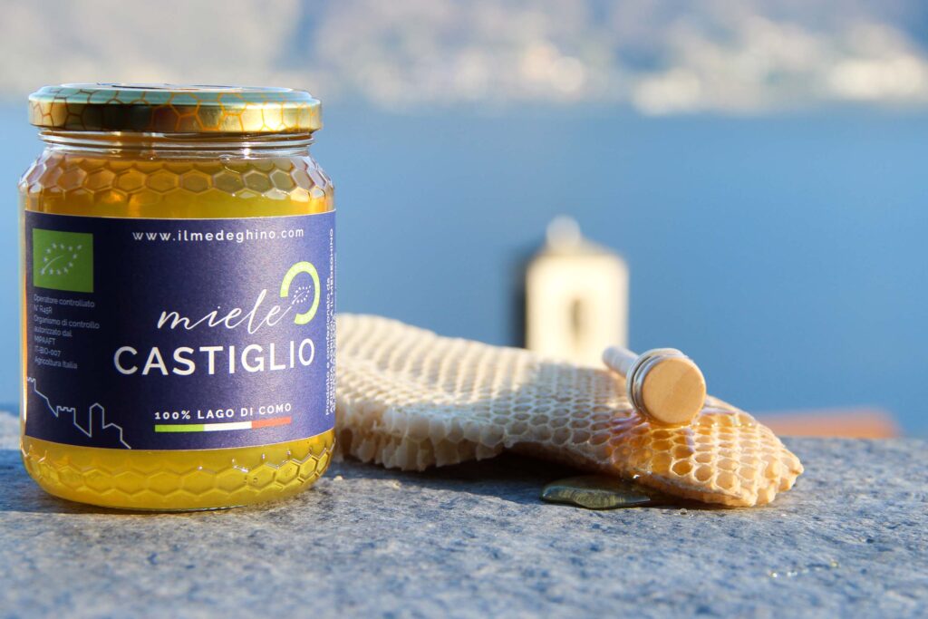 Il Medeghino farm strives to produce natural and genuine products using beehive nomadism during the early spring months. The hives are moved to 500 metres, 800 metres and up to 1300 metres above sea level. At these different levels the bees are able to visit many different flowers. Acacia honey is produced from flowers at lake level. There is also Millefiori Honey, High Mountain Wildflower Honey, Chestnut Honey, Linden Honey, Forest Honeydew Honey which are all produced at different altitudes. All these honeys have a unique flavour and nutritional properties.